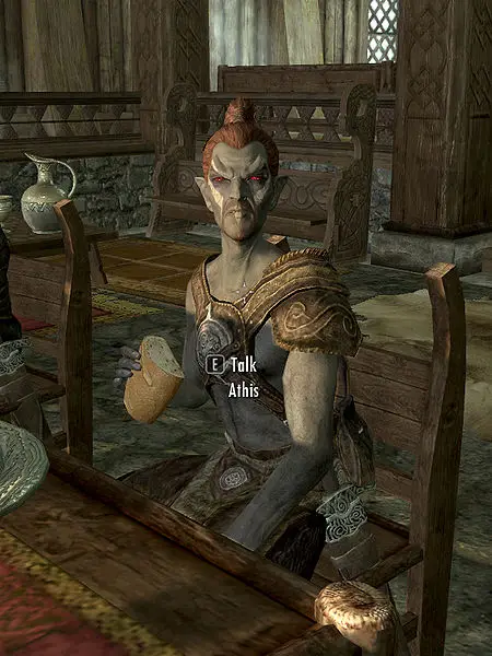 Du siehst ihn einfach da sitzen und er knechtet dich nun so richtig! Oh, vielleicht futtert er nebenbei noch ein Brot, so wie Athis aus Skyrim das tut.